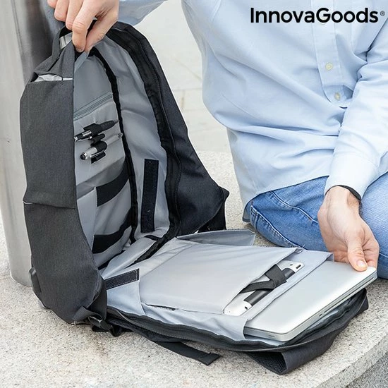 Bovendien is de rugzak van het merk InnovaGoods uitermate geschikt om mee op reis te nemen, omdat hij over een USB oplaadpoort beschikt, waardoor u altijd een powerbank in de vorm van uw rugzak bij de hand hebt.