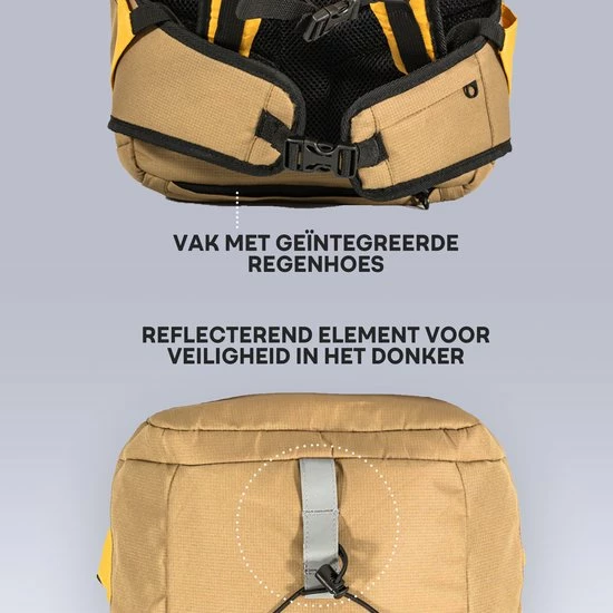 Er wordt een bijpassend tasje meegeleverd dat op verschillende manier is te gebruiken. De fietser stopt er zijn noodgereedschap in, de zwemmer zijn douchespullen en de reiziger zijn opladers en adapters. .Daarnaast zit er in het onderste vak een regenhoes die je om de tas heen kan doen. Deze zit vast zodat je hem niet kwijt kan raken .Door extra padding in de rug toe te voegen is onze rugtas enorm comfortabel en wordt het gewicht van de tas goed verdeeld. Last but not least zit de rugzak verpakt in weer een andere tas welke je er ook gratis bij krijgt!