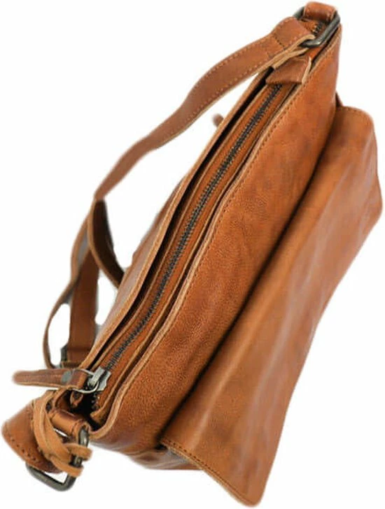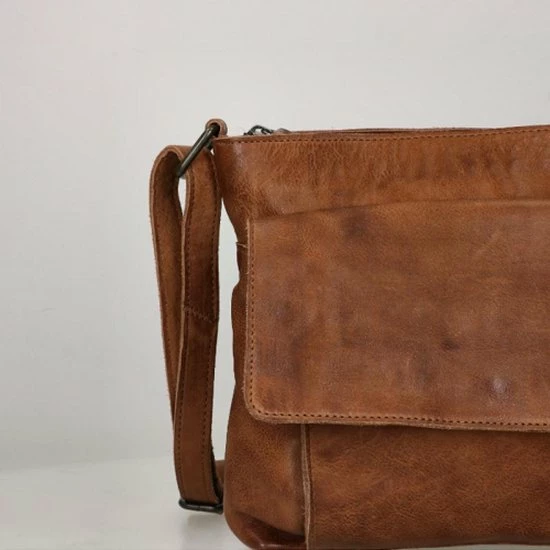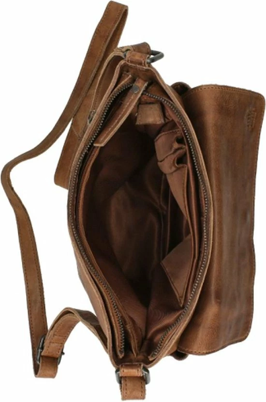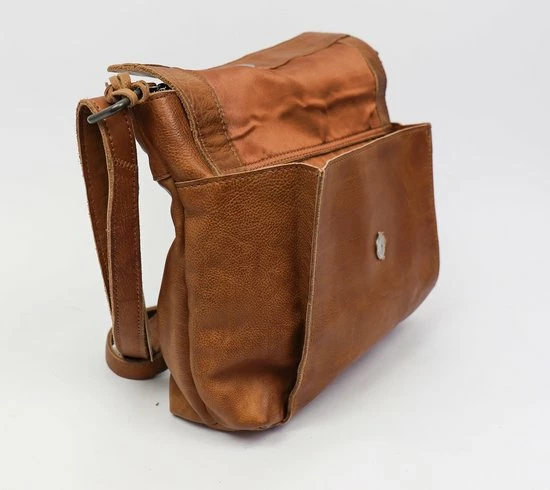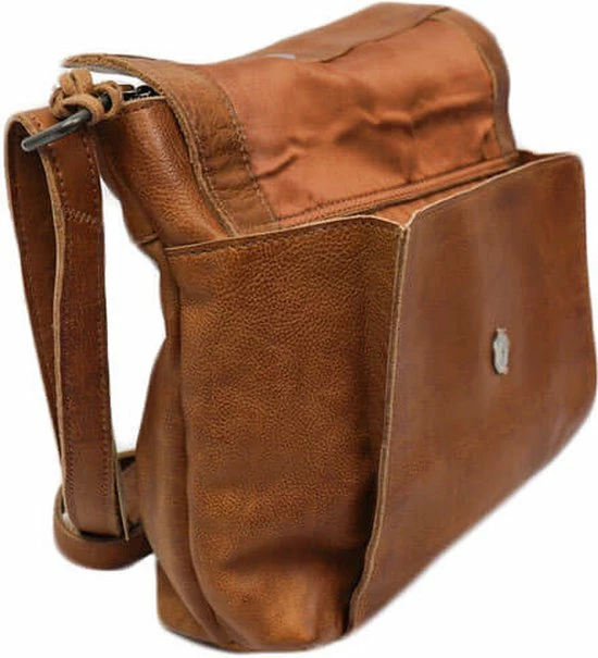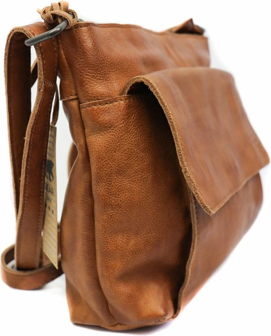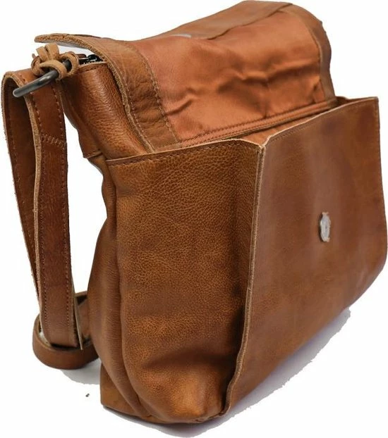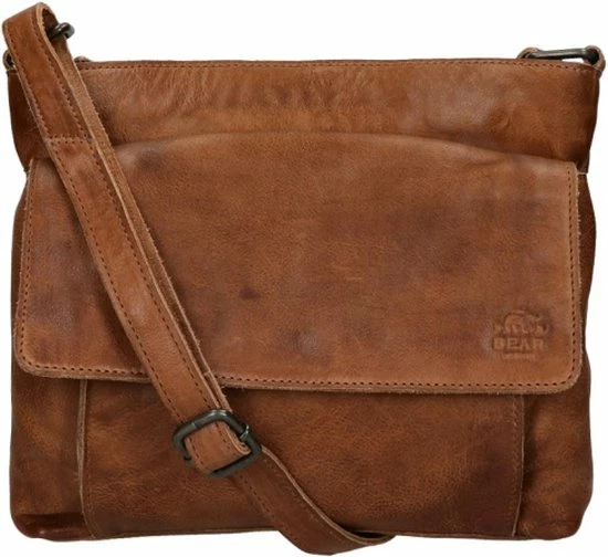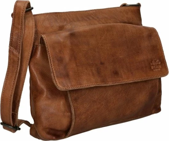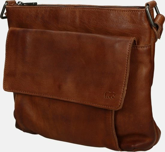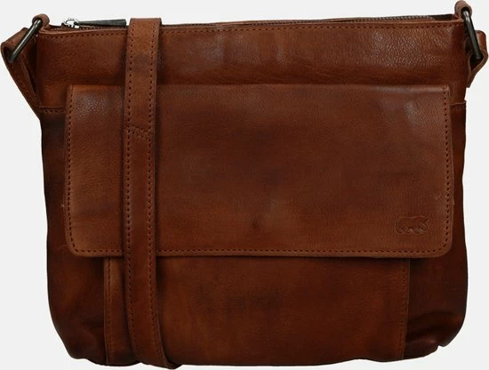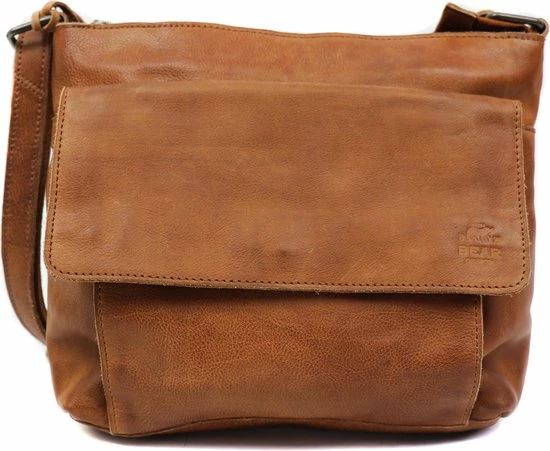 Alledaagse dingen doe je met deze Bear Design schoudertas uit de Calisto Pelle collectie. Zoals altijd zijn de tassen van dit merk sterk in materiaal en uitstraling. Het grote vak aan de voorkant is natuurlijk opvallend en naast de kleur cognac bepalend voor de look van de tas. Op deze wijze heeft de praktische toevoeging ook esthetische waarde. De achterkant van de tas heeft een ritsvak