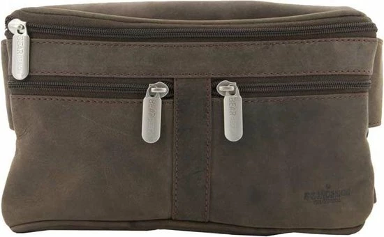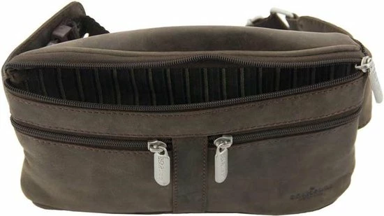 Prachtige leren heuptas uit de Dark Nature serie van Bear Design. Op de voorzijde zitten twee ritsvakjes en ook op de achterzijde zit een ritsvak. De heupriem is verstelbaar en heeft een schuif/klik-sluiting. Draag deze heuptas op je heup of, volgens de huidige trend, schuin over je bovenlichaam (crossbody).