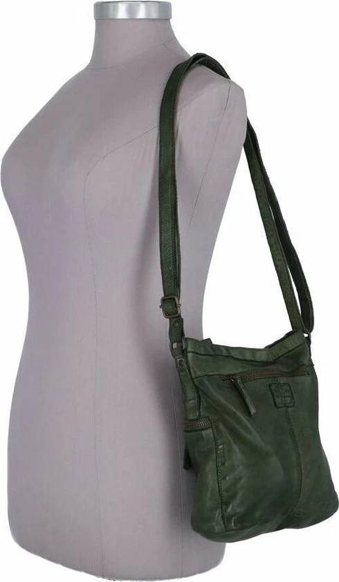 Mooie leren schoudertas uit de Cow Lavato serie van Bear Design. De tas is afsluitbaar met een rits. Binnenin zit een steekvakje en een ritsvakje. Op de voorzijde zitten twee kleine ritsvakjes en ook op de achterzijde zit een ritsvak. Met de lange en verstelbare schouderband kun je de tas op de door jou gewenste lengte over de schouder of schuin over het lichaam (crossbody) dragen.