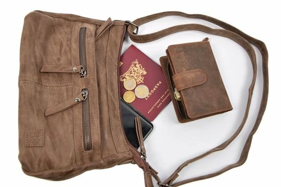 Deze tijdloze bicky bernard schoudertas is een mooie stoere compacte tas voor alledaagse bezigheden. Door de leather/nubuck achtige look past het snel mooi bij je outfit. Deze tas beschikt over drie voorvakken, één ruim hoofdvak en één achtervak, allen met een ritssluiting. Aan de binnenkant bevindt zich een extra ritsvak en nog een extra klein opbergvakje. Deze schoudertas is gemaakt van kunstleer en de schouderband is ruim verstelbaar.