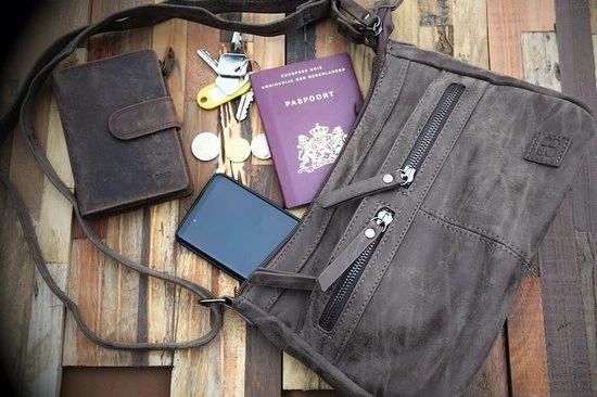 De tas is verkrijgbaar in de kleuren zwart, camel, donkerbruin, navy, olive, grijs
