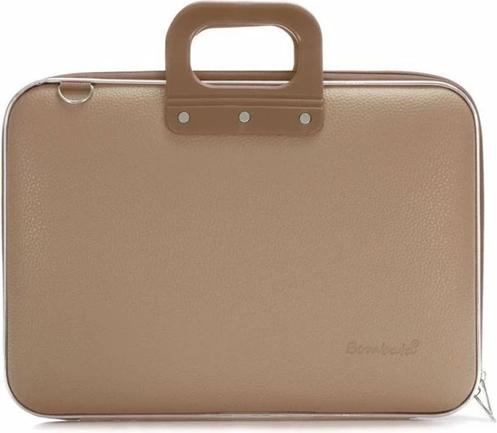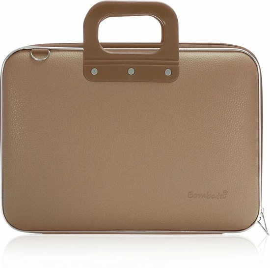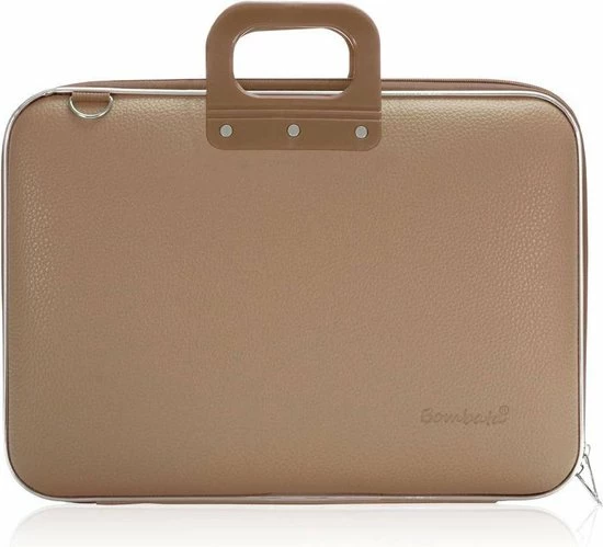 Deze stevige taupe kleurige Bombata 17 inch laptoptas is gemaakt van stevig kunstleder met siliconen handgrepen. De Bombata laptoptassen zijn alles behalve saai en worden gemaakt in verschillende kleuren. Om de randen van de tas zit een stijlvolle chromen bies. De laptoptas is gemaakt uit degelijke materialen en is voorzien van een afneembare en verstelbare schouderband.