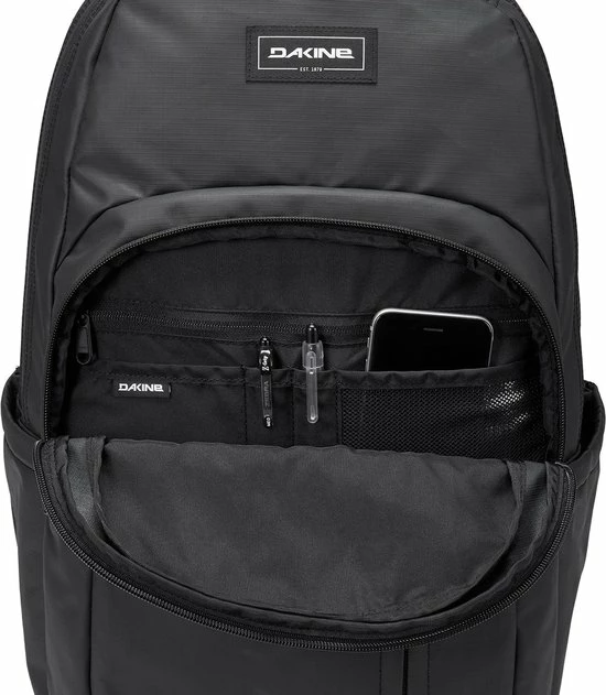 - Vakken: Twee hoofdvakken, laptop compartiment, klein vak aan de voorkant, twee kleine voorvakjes, allen met ritssluiting. Zijvakjes voor een waterflesje. Klein ritsvakje aan de achterkant in het rugpaneel.