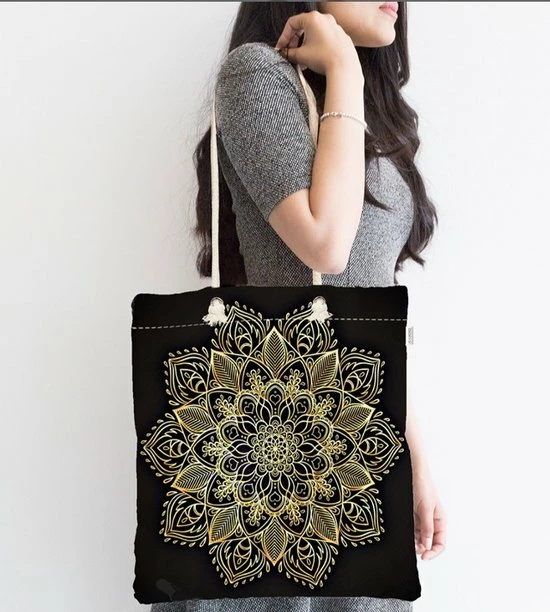 Beste deal β¨ De Groen Home Strandtas – Canvas Tas – Gold Mandala Op Zwart- 45×50 – Hobbytas – Schoudertas – Dames Tas Met Rits – Abstract Modern π€©