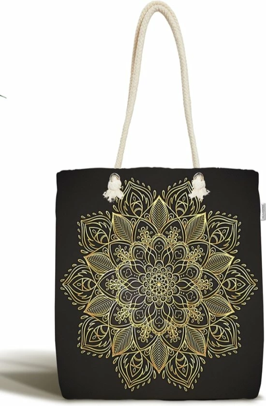 Deze stoere schoudertas met Gold mandala op zwart is een echte eye-catcher op straat. Je kunt hierin gemakkelijk je strandlaken en zonnebrand meenemen. Bovendien heeft de beach bag heeft een binnenvakje voor bijv. je sleutels en/of mobieltje!