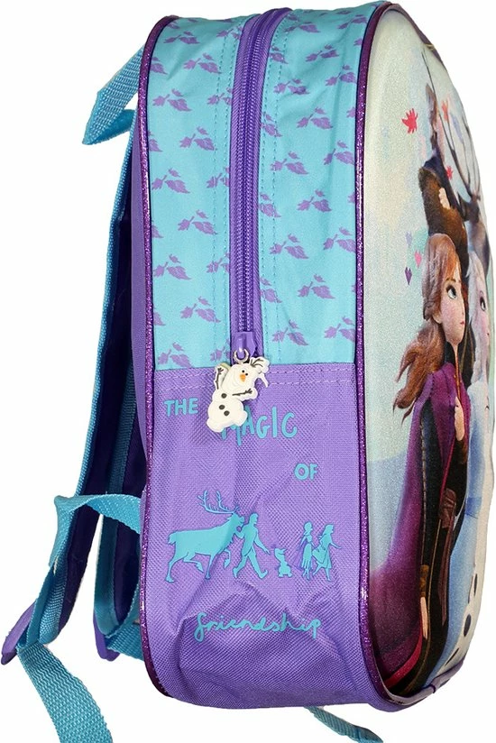 Een hoge kwaliteit backpack van Disney Frozen. Deze Frozen tas heeft een afmeting van 27 x 33 x 11 centimeter en is geschikt voor mee naar school te nemen. Op de tas staan afbeeldingen van Elsa, Anna, Olaf, Hans en Sven.