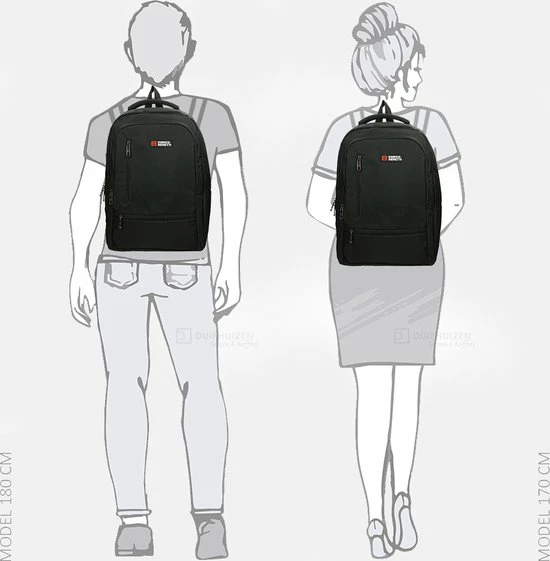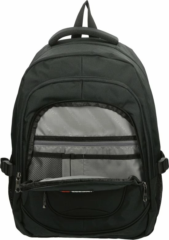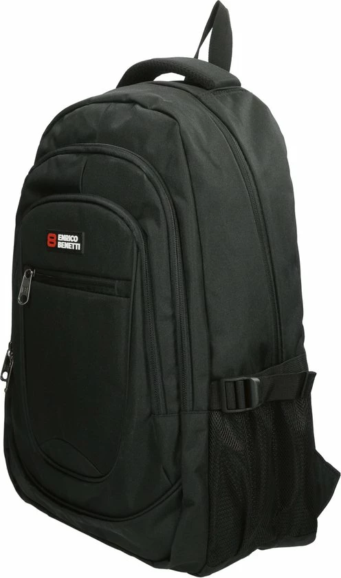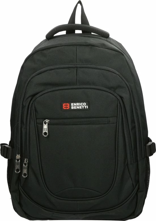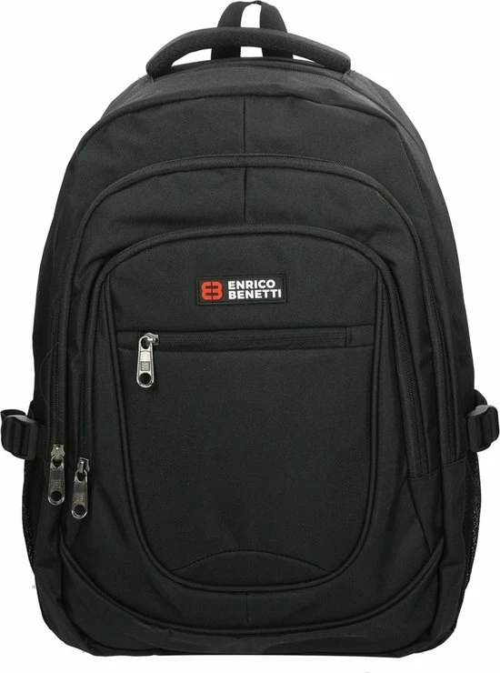 Dit is de sportieve en ruime laptoprugzak 17β uit de Hamburg serie van Enrico Benetti. Deze rugzak heeft heel veel opbergmogelijkheden, zoals in het voorvakje en ruime voorvak met organiser. Hierin berg je kleine spulletjes op zoals pennen, sleutels etc. Deze rugzak heeft twee hoofdvakken, een mesh binnenvak met ritssluiting en een 17β gewatteerd laptopvak. De tas heeft twee elastische mesh zijvakken waarin je bijvoorbeeld een drinkfles opbergt. Zo heb je die altijd gemakkelijk binnen handbereik! In het rugpaneel zit een veiligheidsritsvak waarin je extra veilig je waardevolle spullen opbergt. Ook heeft de tas een trolleyband waarmee je de tas over de trekstang van je koffer schuift en daarmee bovenop je koffer gemakkelijk met je meeneemt! Het rugpaneel en de schouderbanden zijn verstevigd en voorzien van luchtdoorlatend foam, voor extra luchtig draagcomfort. Uiteraard zijn de schouderbanden verstelbaar naar jouw wens. Deze ruime tas wat compacter maken, doe je door de twee straps aan de zijkant wat aan te trekken.