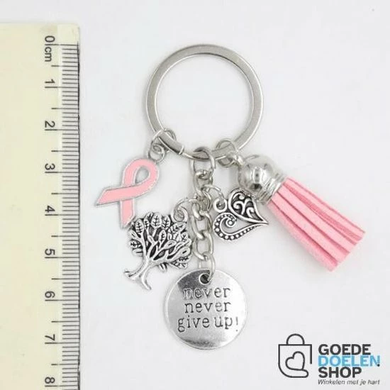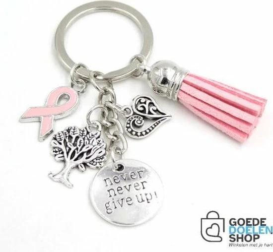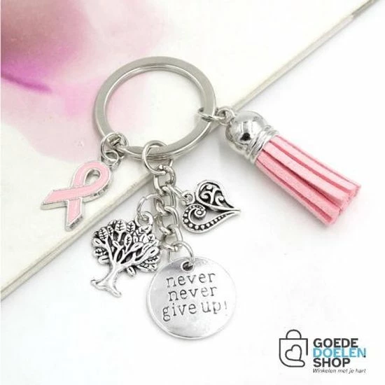 Hete verkoop π GoedeDoelen.Shop |Sleutelhanger “Never Give Up” | Tashanger | Cancer | Hope |Ribbon | Tree Of Life | Hartje π