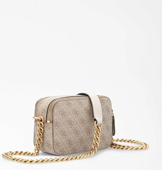 Het perfecte beige tasje bestaat nietβ¦of toch wel? Deze crossbodytas van Guess komt namelijk erg dicht in de buurt! Het tasje komt uit de Noelle collectie en heeft de classy kleur beige. De schouderband bestaat uit een prachtige goudkleurige ketting met aan de bovenkant een speciaal stukje PU leer, waardoor de tas comfortabel over je schouder hangt. Het Guess logo op de voorkant mag uiteraard niet ontbreken!