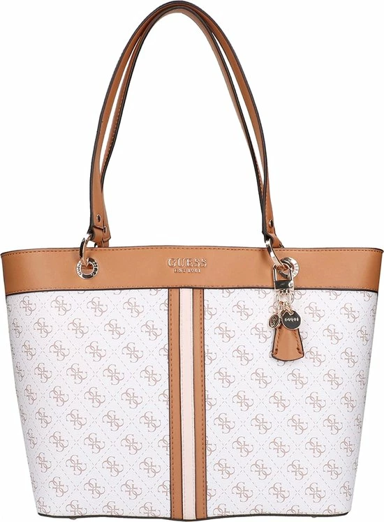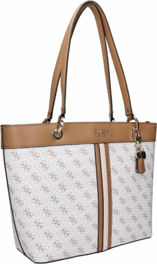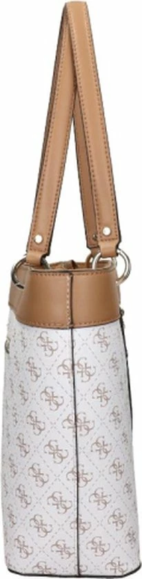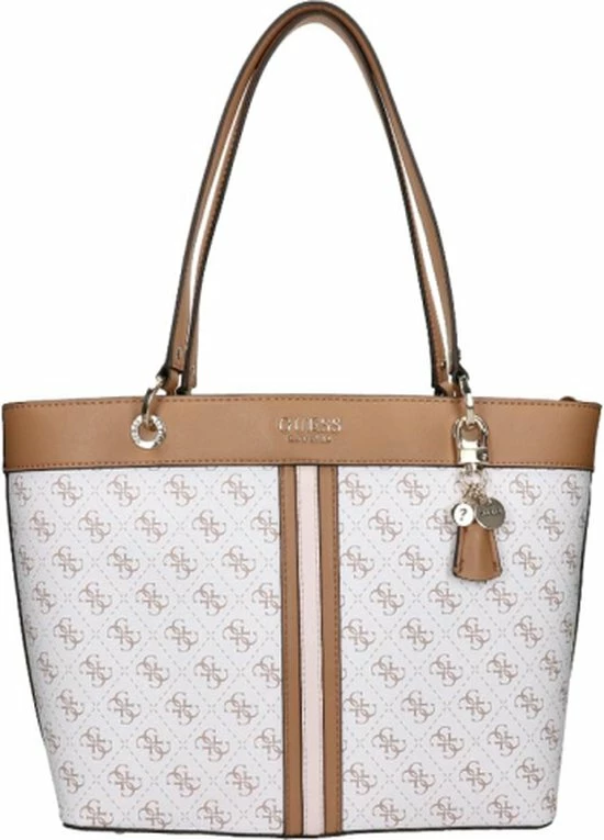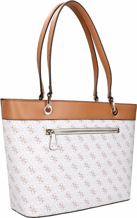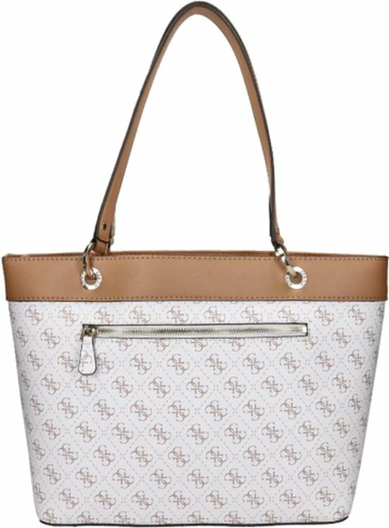 Maak kennis met deze nieuwe Noelle schoudertas in de kleur wit. Op en top Guess door het logo patroon over de gehele tas. Het goudkleurige hardware geeft de tas een extra chique uitstraling. Op de achterzijde heeft de tas een handig ritsvak voor je kleinste essentials. Draag de tas gemakkelijk over de schouder met behulp van de stevige schouderbanden.