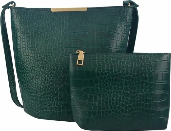Groene moderne tas met slangenleer motief van het merk MeLady Tas Damestas
