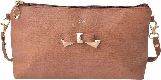 Bruin moderne make-up tas met goudkleurige accenten en een strikje van het merk MeLady Make Up Tasje Make-Up Etui