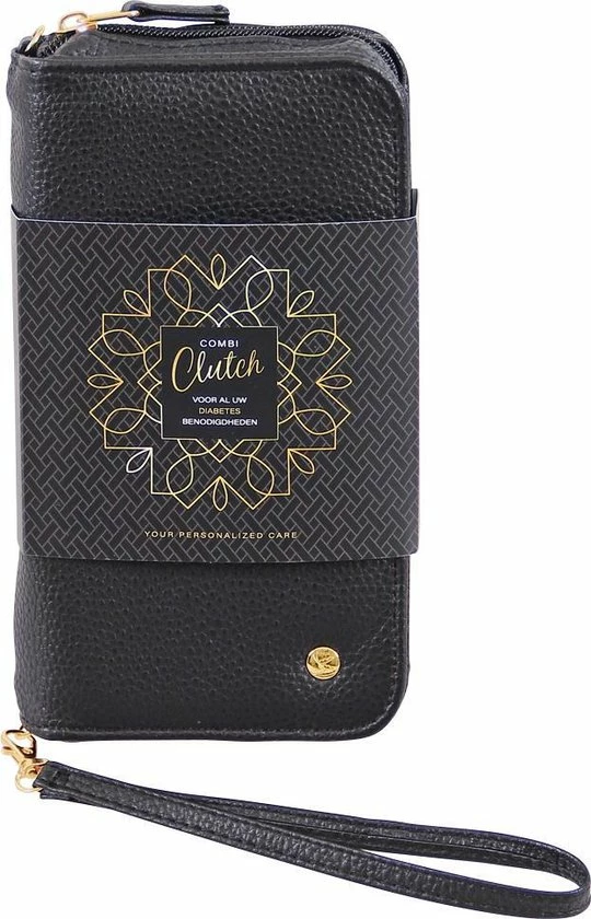 De clutch is voorzien van een ritssluiting en verkrijgbaar in de varianten noir, bordeaux en leopard. Zo is er altijd een variant dat bij jou past. De diverse vakken en lussen bieden onder andere ruimte voor een bloedglucosemeter, prikpen, insulinepen, teststrips en wat persoonlijke accessoires. De clutch draag je bij je doormiddel van de handige strap.