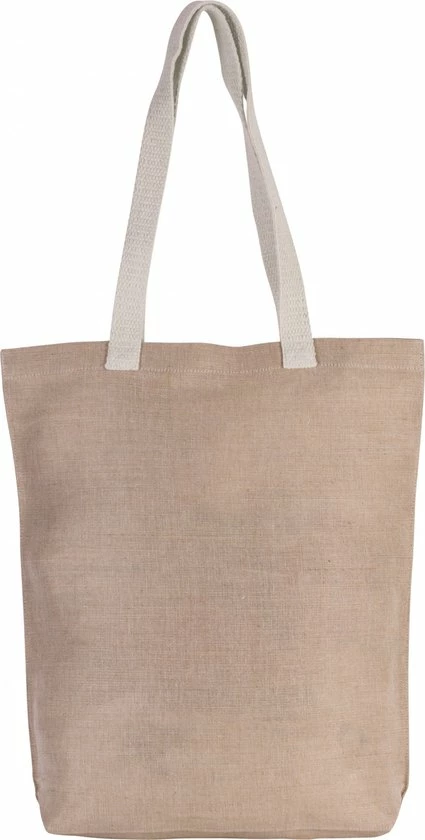 Jute canvas katoenen schoudertasje in het natural beige 38 x 42 cm. Met ecru kleur hengsels. Inhoud: 11 liter. Natuurlijk materiaal. Lange hengsels om in de hand te houden of op de schouder te dragen. Goed geschikt als goodie bag. Boodschappentas, shoudertas, gymtas.