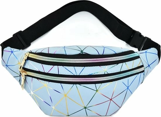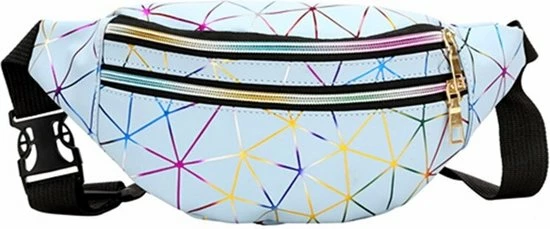Deze unieke trendy heuptas is door zijn bijzondere kleuren en look een echte musthave. Zowel op feestjes als op een festival is deze fannypack een echte eyecatcher door zijn glow in the dark eigenschappen. Het gebruik van verschillende holografische effecten maakt deze heuptas anders dan andere. Ideaal voor het opbergen van kleine spullen zoals bijvoorbeeld je telefoon/portemonnee en andere gebruiksvoorwerpen. Het handige opbergvakje aan de achterzijde en zijn waterafstotende eigenschappen maakt dit tasje ook zeer geschikt voor reizen/vakantie/strand. Uiteraard is de riem afstelbaar voor een perfecte pasvorm.