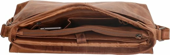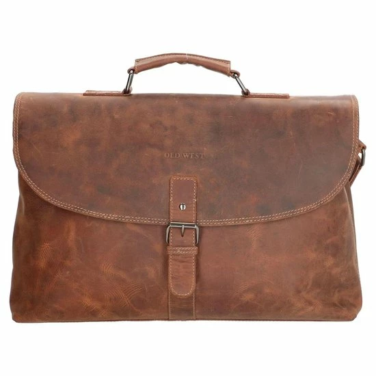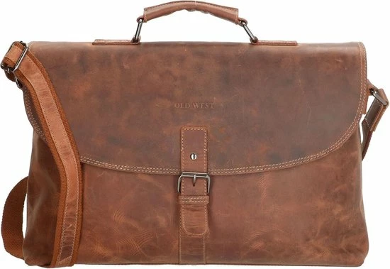 Mooie laptoptas van Old West van robuust leer. Het ruime hoofdvak is afsluitbaar middels een klep met schuif/click-sluiting. Binnenin het hoofdvak zit een laptopvak voor een 15 inch laptop, een ritsvak en een organizer voor het overzichtelijk opbergen van een smartphone, pennen etc. Op de voorzijde van de tas , onder de klep, zit een groot ritsvak. Op de achterzijde zit ook een groot ritsvak. Tas kan met het handvat in de hand gedragen worden of over de schouder door gebruik te maken van de lange, verstelbare schouderband.