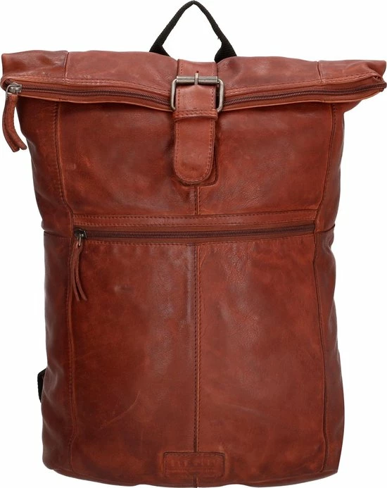 Stoere rolltop rugtas uit de Paint Rock serie van Old West. Het leer van de tas is soepel en heeft een super fijne feel. De tas is subtiel afgewerkt met het Old West logo. Het hoofdvak sluit met een ritssluiting en de rolltop. Door de dubbele sluiting is de tas erg veilig. Met de rolltop aan de bovenzijde kan de rugtas opgerold worden, op de rolltop zit een kliksluiting. In het hoofdvak zit een ritsvak en een gewatteerd laptopvak voor een 13,3 tot 14 inch laptop (max. 25 x 35 cm). Ook heeft de rugtas een voorvak met ritssluiting met daarin een organizer voor het overzichtelijk opbergen van pennen en kleine accessoires.
