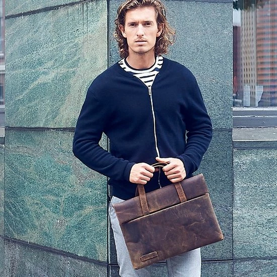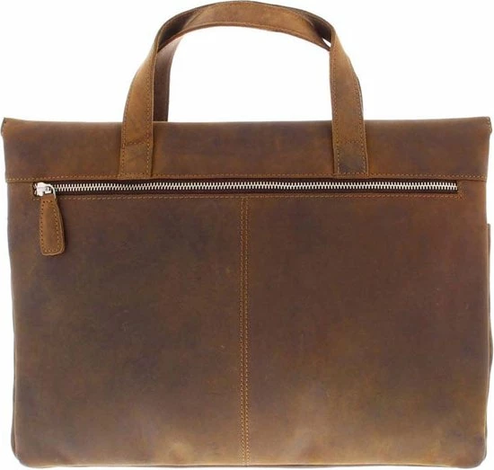 Stoere laptop sleeve van stevig volnerf plantaardig gelooid leer met een vintage uitstraling. Deze sleeve is geschikt voor een 15-15.6 inch laptop. Het voorvak is een organizer ritsvak, waar 2 speciale rekbare vakken inzitten voor bekabeling en muis/adapter.