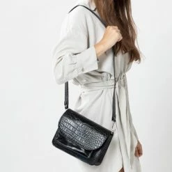 Beste Verkoop π₯° Sacha – Zwarte Schoudertas Met Crocoprint π€©