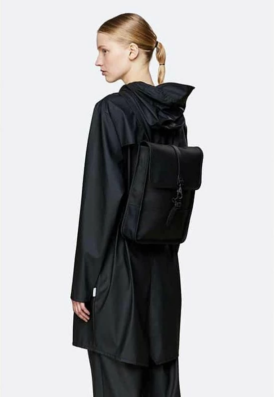 Rugzak Micro maakt deel uit van het kenmerkende Rugzak-trio van Rains, de kleinste van de drie opties. Als kenmerkend silhouet is de minimalistische versie van een rugzak gemaakt van waterdicht PU en voorzien van een klep aan de bovenkant met een rubberen sluiting en een maritieme karabijnhaaksluiting. Het interieur van de tas is voorzien van een hoofdvak en is afgewerkt met TPU schouderbanden en een waterdichte ritssluiting aan de achterzijde.