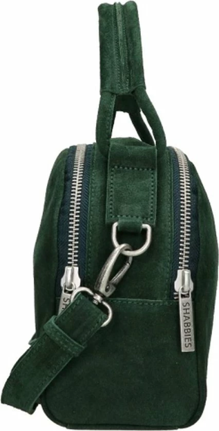 Dit is een prachtige handtas van Shabbies Amsterdam, gemaakt van Waxed Suède. De tas heeft een elegante, ronde vorm en een eenvoudige opmaak. De tas kan als handtas gedragen worden of als crossbody met het afneembare, verstelbare schouderband. De Waxed Suède komt goed tot zijn recht in de kleur groen, echt een aanwinst voor jouw collectie.