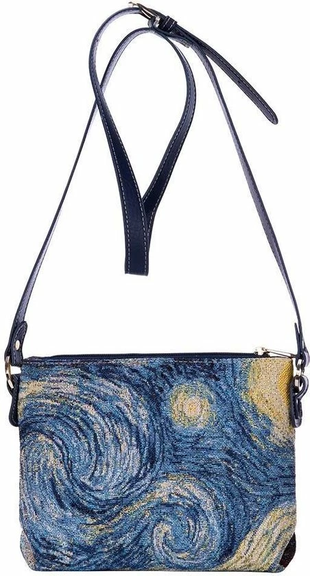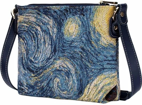 Klein stijlvol gobelinlook tasje dat je schuin over kunt dragen d.m.v. de lange schouderband.