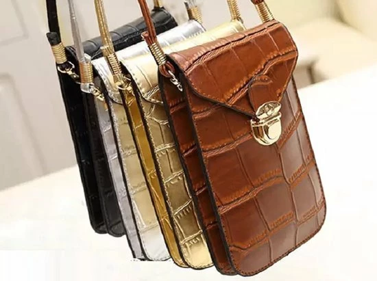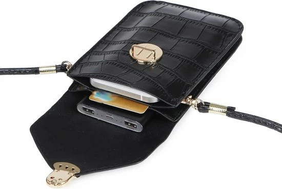 Het telefoontasje heeft een 2 vakken, het hengsel is afneembaar en hij is af te sluiten met schuifknop.