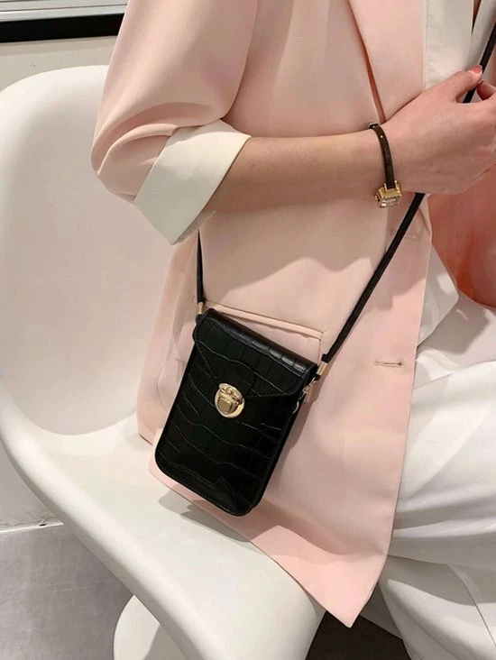 Ben jij opzoek naar een handig tasje voor je telefoon? Dan is dit smartphone tasje ideaal! Erg hip door de croco print en de goudkleurige details! Dit telefoontasje is een echte musthave!