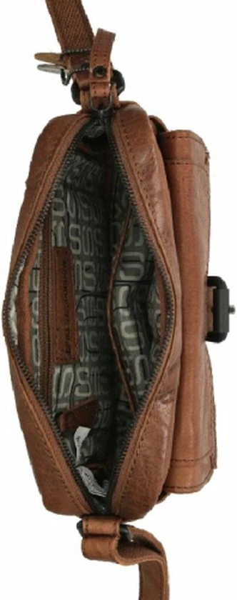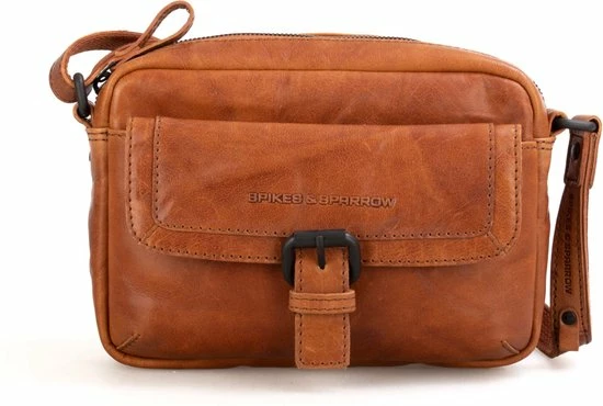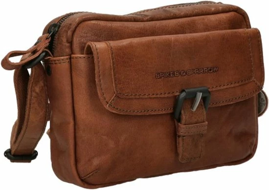 Deze multifunctionele cognac kleurige crossbodytas van Spikes & Sparrow uit de Bronco collectie is gemaakt van prachtig leer. De hengsels van de tas zijn verstelbaar hierdoor kan je de tas als schoudertas en als crossbody dragen. Handig als jij bijvoorbeeld een stukje gaat fietsen met deze tas. De voorkant heeft een eigentijds klep met metalen sier-gesp.De klep sluit met een magneetsluiting. Handig als je, je mobiel snel wilt opbergen. De achterzijde heeft een ritsvakje waar je kleine spulletjes in op kan bergen.