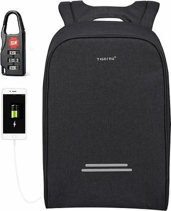 De Tigernu Security III laptop rugzak geeft u altijd en overal een veilig gevoel. De multifunctionele anti diefstal rugzak van Tigernu heeft een groot aantal overzichtelijke compartimenten en is een stuk steviger als andere laptop rugzakken. De rugtas is gemaakt van snijbestendige materiaal, voorzien van verborgen vakken en word geleverd met een gratis cijferslot. Hierdoor is het voor zakkenrollers onmogelijk om waardevolle eigendommen uit de rugzak te stelen. Ook is de laptop rugzak voorzien van een USB aansluiting waardoor u altijd en overal uw telefoon kunt opladen. Bent u op zoek naar een veilige, overzichtelijke en comfortabele laptop rugzak? Dan is de Tigernu Security exact wat u zoek.