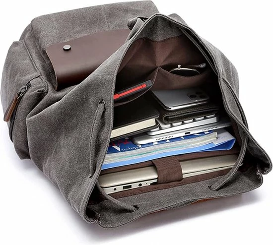 GROTE OPSLAGRUIMTE – Deze Vintage Backpack heeft met zijn afmetingen (45 x 33 x 18 cm) ruimte voor veel spullen. De gevoerde laptophoes zorgt ervoor dat laptops tot wel 17″ beschermd kunnen worden.