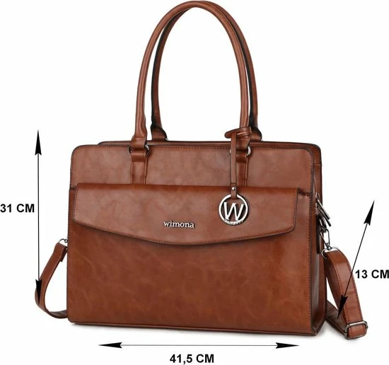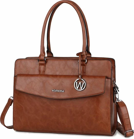 Flash-uitverkoop π Wimona Valentina Schoudertas Laptop 15.6 Cognac π