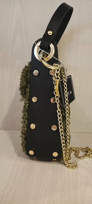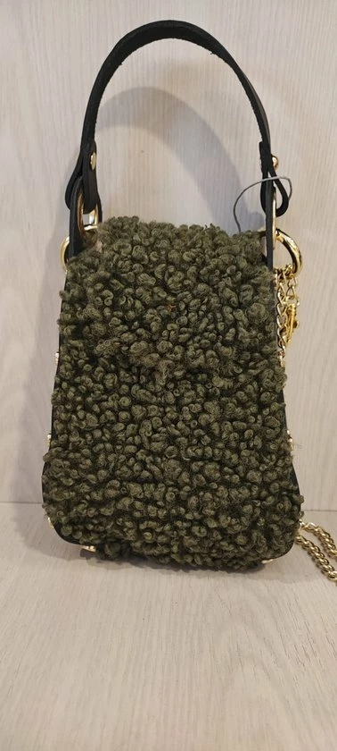 teddy tasje donker groen, 100% echt leer.