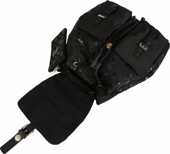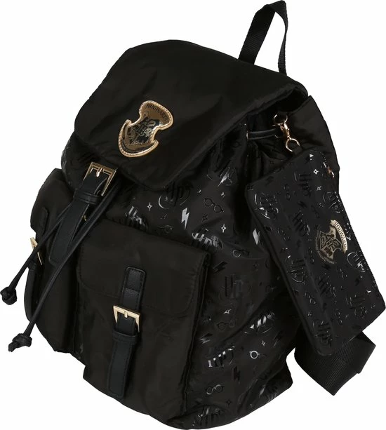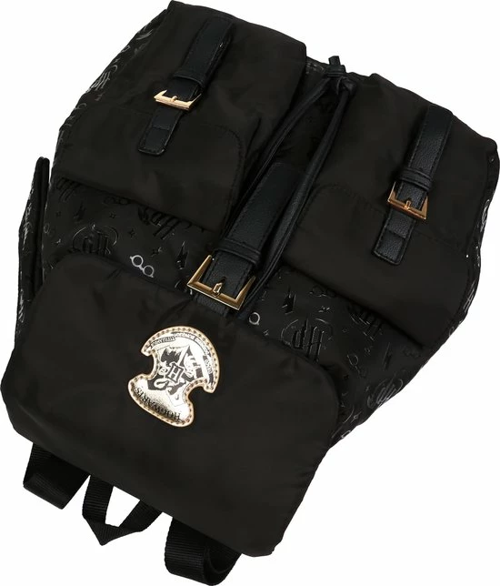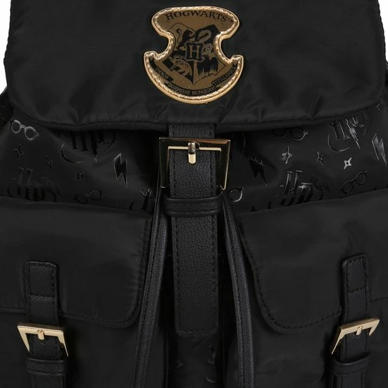 Zwarte, zachte rugzak met subtiele prints met het Harry Potter motief.